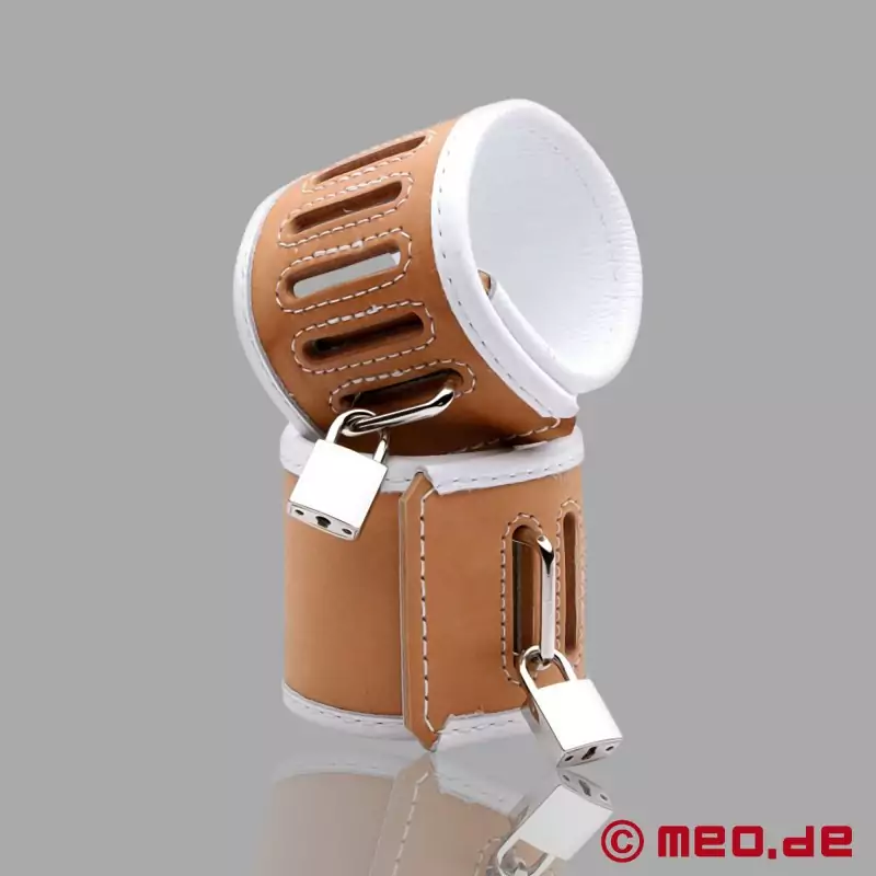 Are you prepping for a medical-style fantasy? Make sure to use these restraints with a more hospital design. They have extra-wide adjustment slots and are constructed out of high-quality leather. There are six adjustment slits and the cuffs can be secured using a lock.