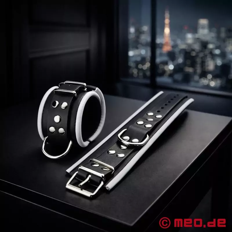 我们的脚镣(jiǎoliào)内衬皮革,下摆柔软、圆润,沿着结实的皮革带边缘滚动。这确保了这些出色的脚铐佩戴舒适,并能长久使用。得益于这种皮革衬里,MEO 脚镣 (jiǎoliào) 在捆绑时佩戴特别舒适,甚至可以长时间佩戴。