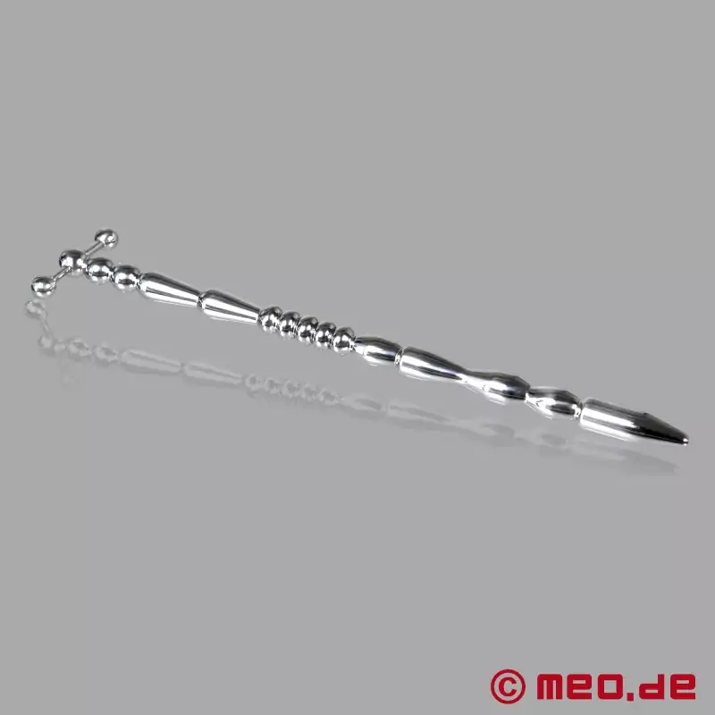 ControlLoss™阴茎塞由高度抛光的不锈钢制成,可提供特别强烈的刺激(也称为 "刺激")。MEO® 阴茎塞的特殊设计令人印象深刻:球状、波浪状和平滑状区域交替出现,可提供针对性刺激,而 T 型手柄可确保安全握住,并精确控制刺激深度和角度。
