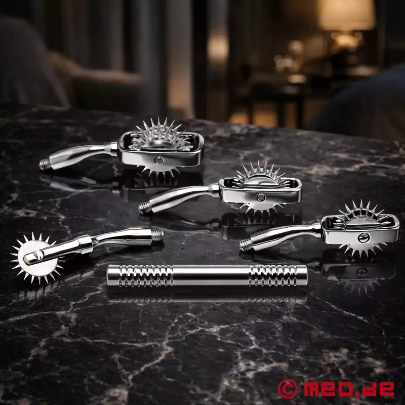 最后但并非最不重要的一点是,针轮也是虐待狂和施虐受虐狂领域的一种有效工具,可以制造快感和痛苦,即使是在较难的 SM 过程中也是如此--尤其是当针轮在生殖器区域的敏感皮肤上滚动时。