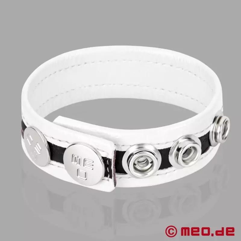 可调节皮革阴茎环 - 白色 - HankyCode™
